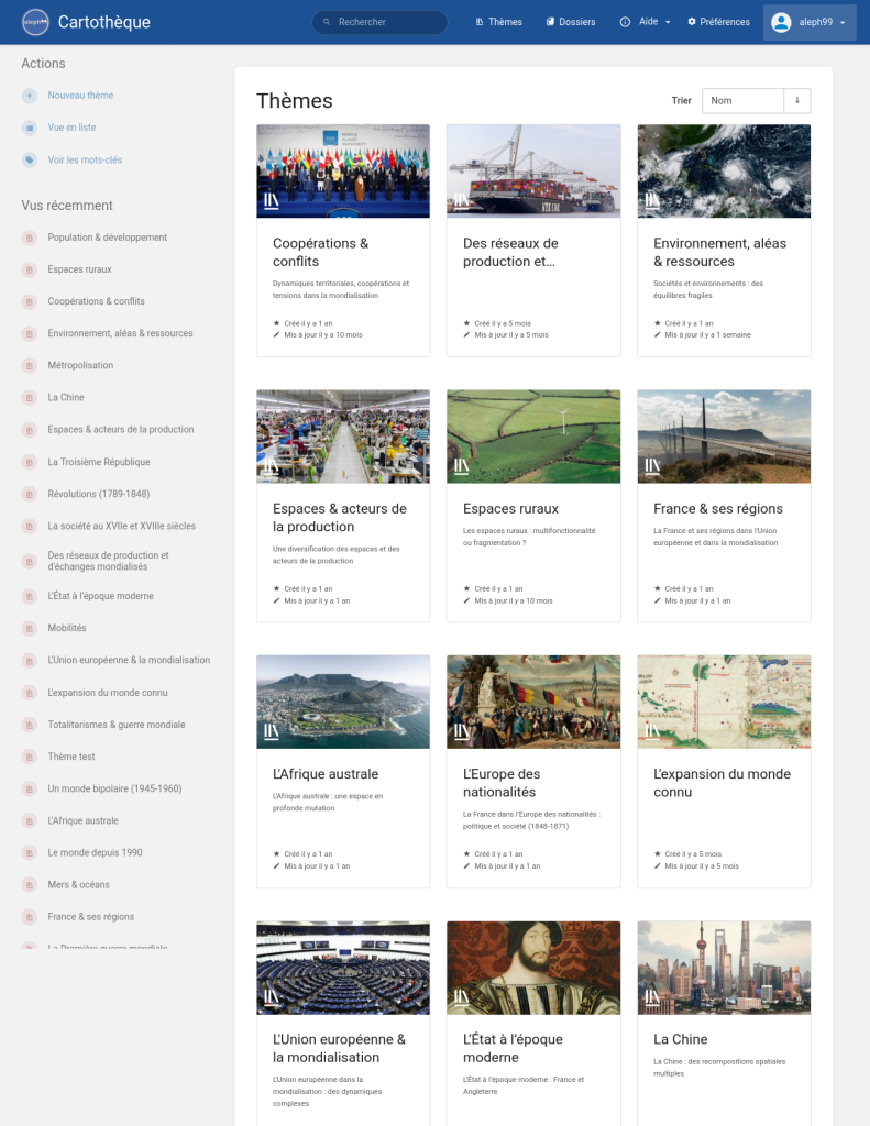 La Cartothèque aleph99 est une ressource numérique indépendante proposant plus de 700 pages de cartes interactives et de graphiques couvrant l’intégralité des programmes d’histoire-géographie du lycée.
